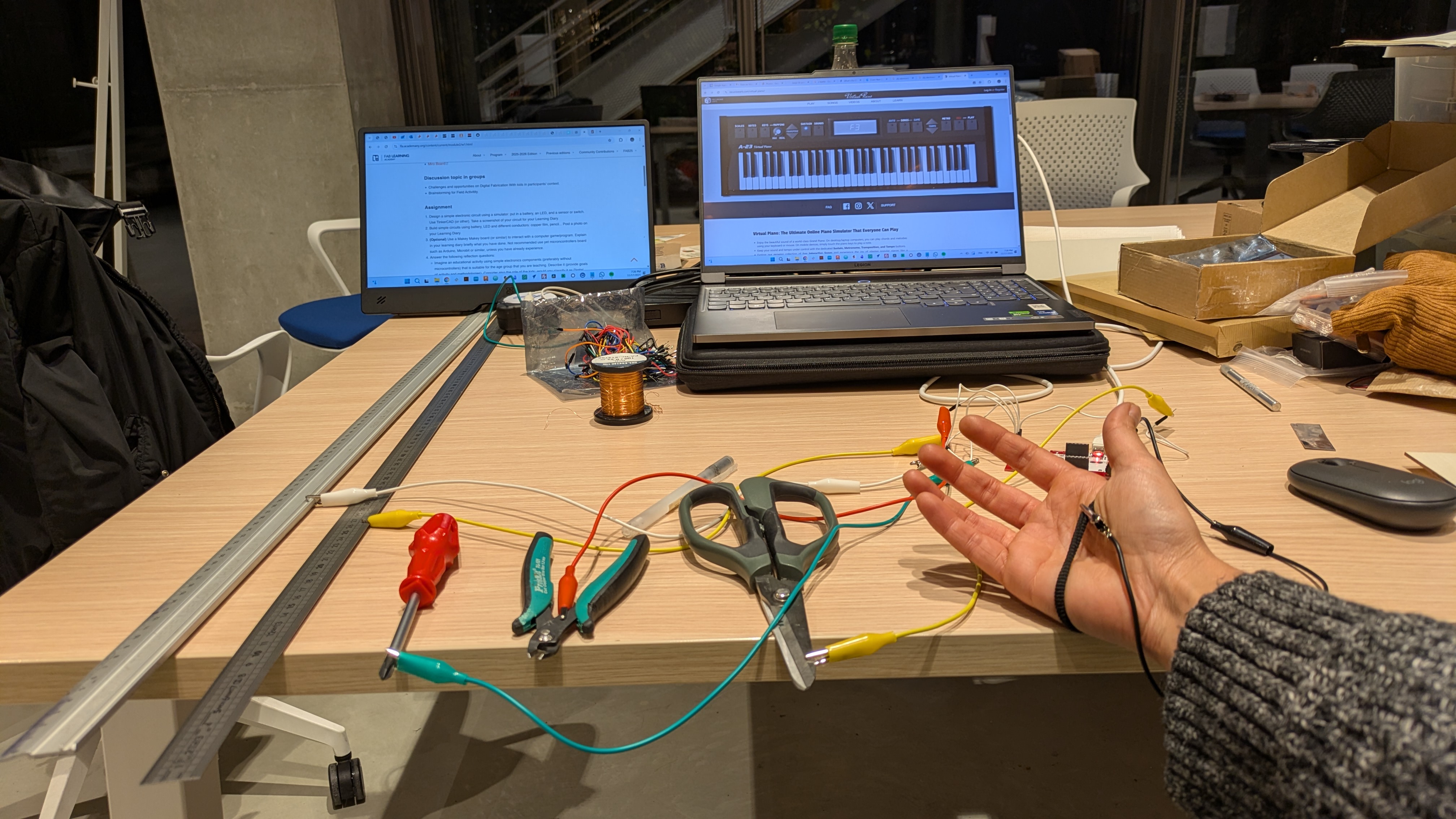 I used a Makey Makey board to play piano with conductive tools that were around in the lab.