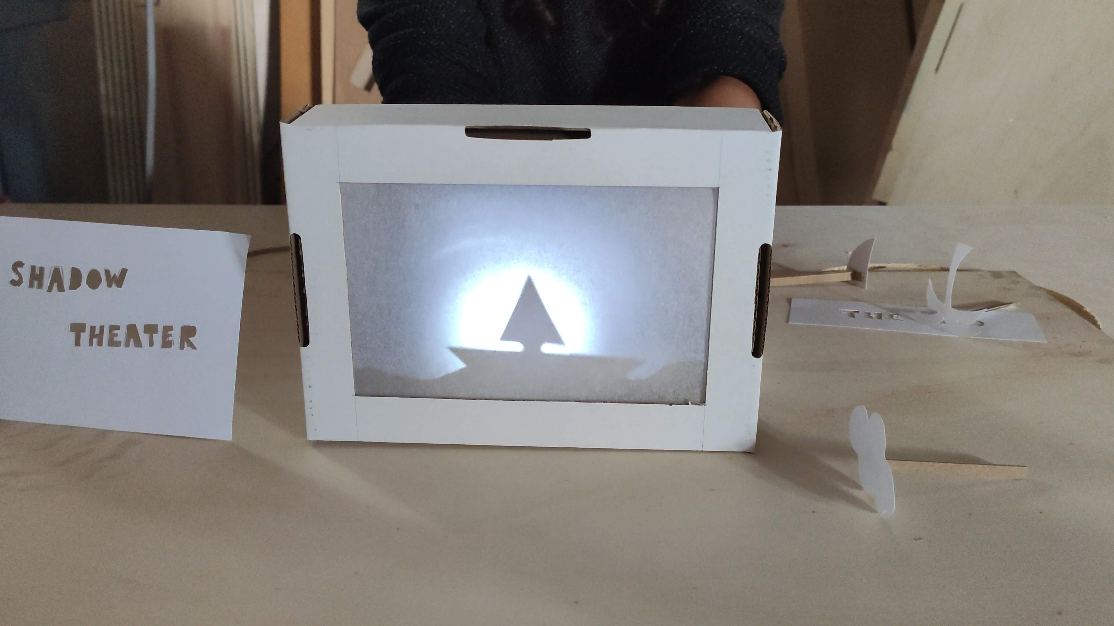 I would classify this activity as digital fabrication with kids - the main circuit is easy to grasp and reproduce, the content of shapes in the shadow theater would be theirs - with certainly some help to build a simple scenario.
