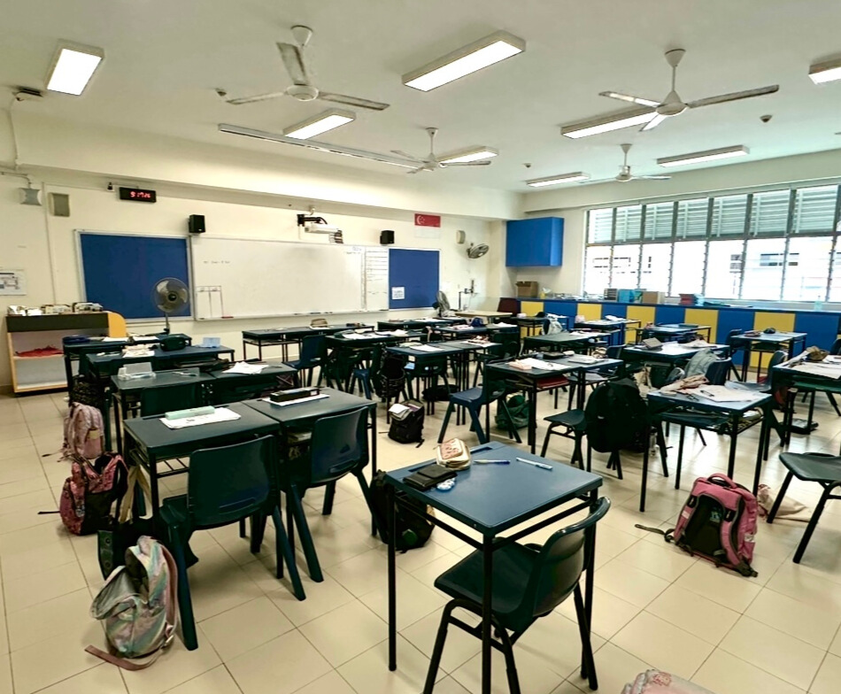 Below is a typical classroom for 40 students. The students were not in class as they were having PE lessons outside the classroom.