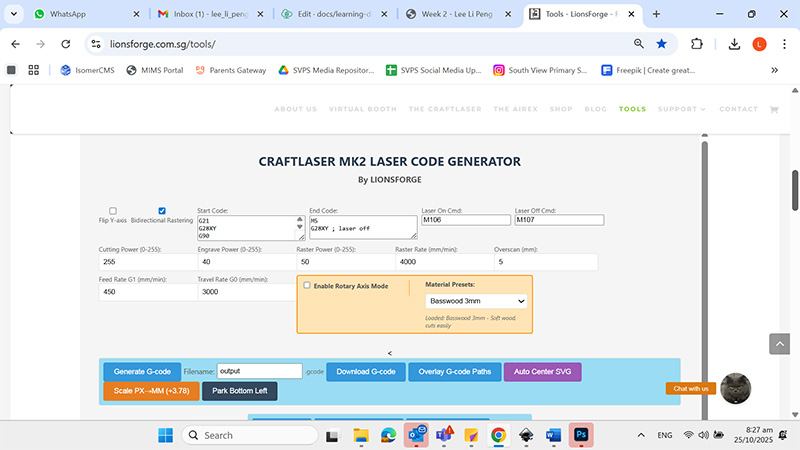 G-Code generating platform: https://lionsforge.com.sg/tools/
