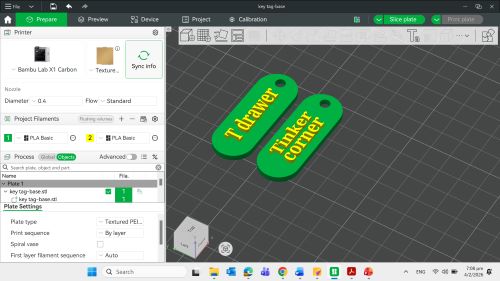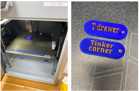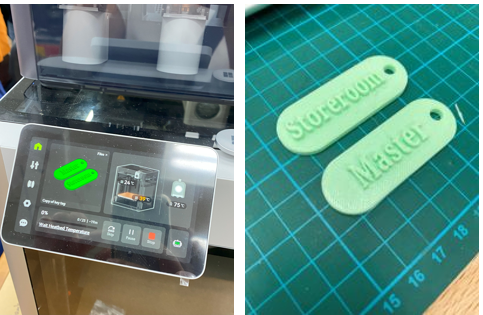 With the help of the instructor, I set up and printed the key tags, but using only 1 color filament.