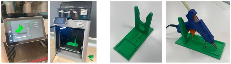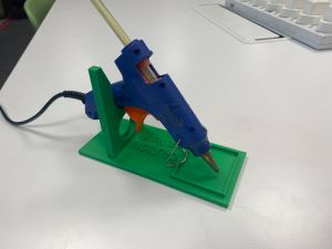 I often noticed that students would leave the hot glue gun lying on the table after use, which was not safe and made the workspace messy. Since the school had recently purchased a Bambu Lab X1C 3D printer, I decided to design and print a hot glue gun stand to solve this problem. I looked at some example designs from Thingiverse for ideas, then used Tinkercad to create my own stand and printed it. The stand printed successfully and worked as intended. However, I realised that the holder was slightly too big for the glue gun. This helped me understand the importance of taking accurate measurements and improving the design through testing and revision.