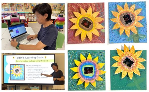 2) Better integration of Art and technology by linking Micro:bit responses to the emotions expressed in their sunflower artwork. Adding an interactive sharing segment would further promote communication and empathy, aligning the lesson more closely with the “learning through making” approach.