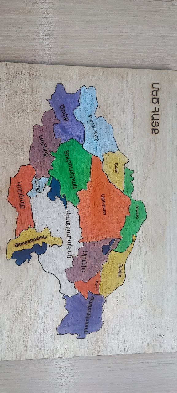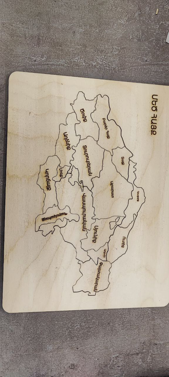 1.Could you have done this activity without the teaching aid you have fabricated?How do you think digital fabrication improves the activity vs utilizing traditional methods? What is the extra value? Yes, this activity could have been completed without the teaching aid but the digital fabrication adds significant value and enhances the learning experience. Students can simply look at printed maps or book pages and try to memorize names, while using a ready-made puzzle map allows them to physically engage with the geography of Armenia in a more interactive and memorable way. Puzzles are beneficial for developing logical and spatial thinking, fine motor skills, and attention. They also help relieve stress, improve mood, and boost self-esteem, while working together helps build teamwork. Furthermore, the game-like nature of the task—the competition between students—increases motivation and interest, making the lesson more dynamic and engaging. Digital production, such as laser-cut or 3D-printed stencils, ensures precision and reusability, offering durable and accurate teaching aids that enhance both collaboration and knowledge acquisition compared to traditional paper-based methods.