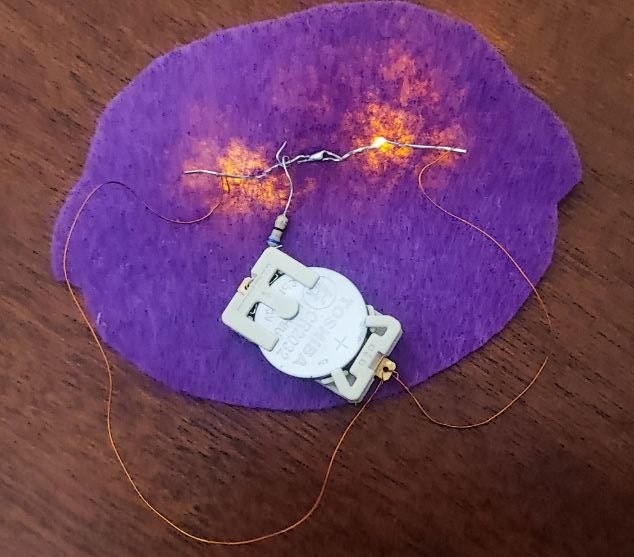 - Felt, battery, LED lamps, resistor, wires.