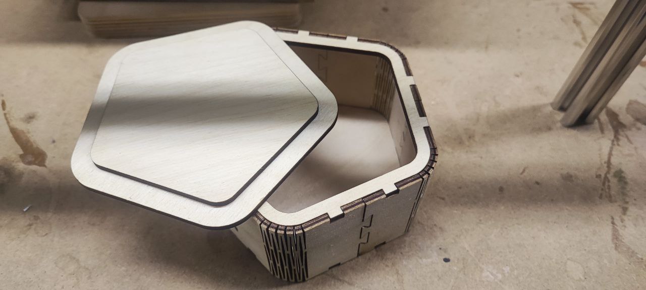 First, I got a ready-made file from the website. I set the required parameters (number of sides, material thickness, etc.) and then downloaded the file and used it for laser cutting.