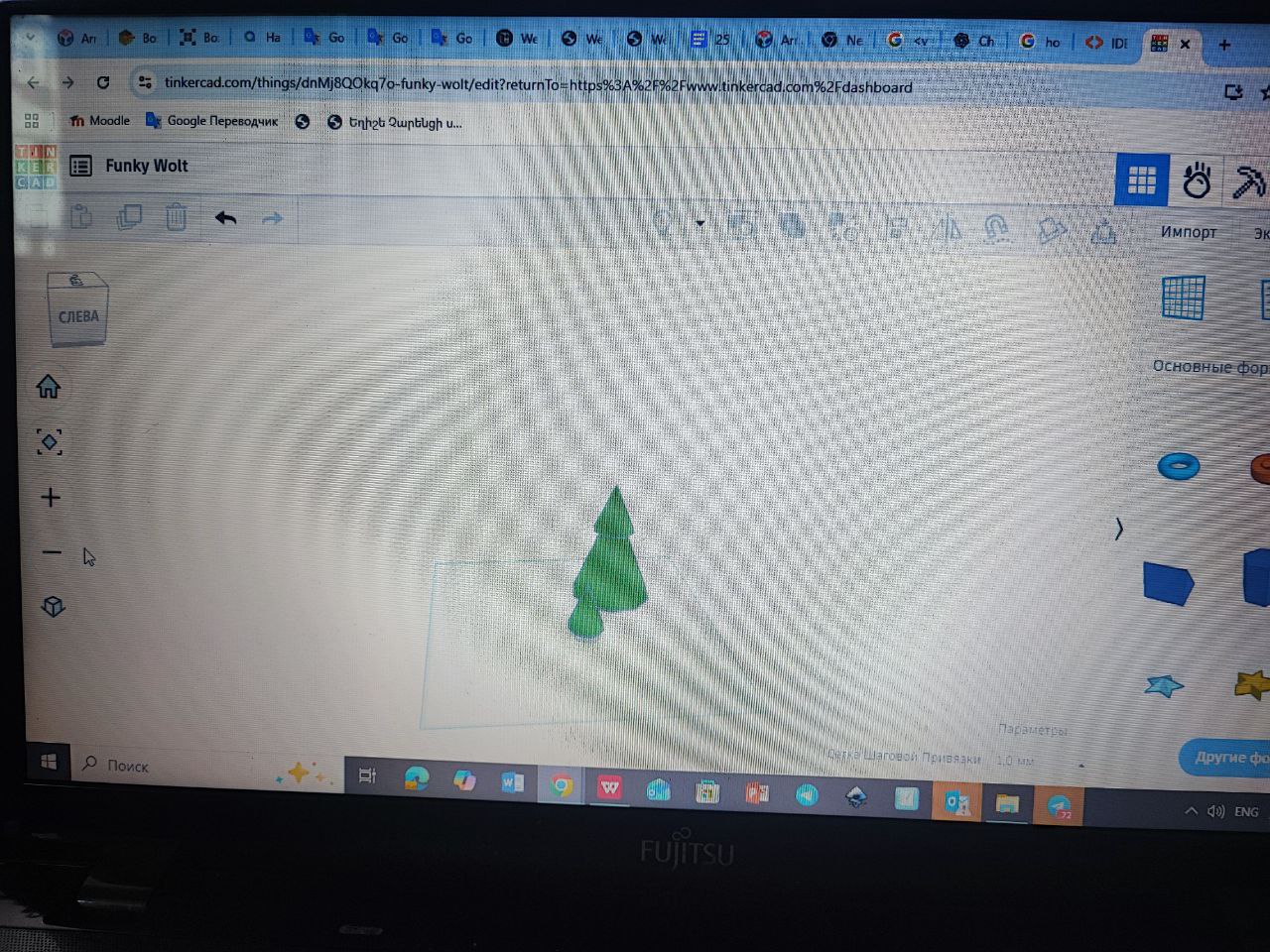 This week I also created a 3D object on the TinkerCad platform: a Christmas tree. For this, I created pyramids, stacked them on top of each other, changed the color, and so on. This way, I learned the functions that can be performed on the object.