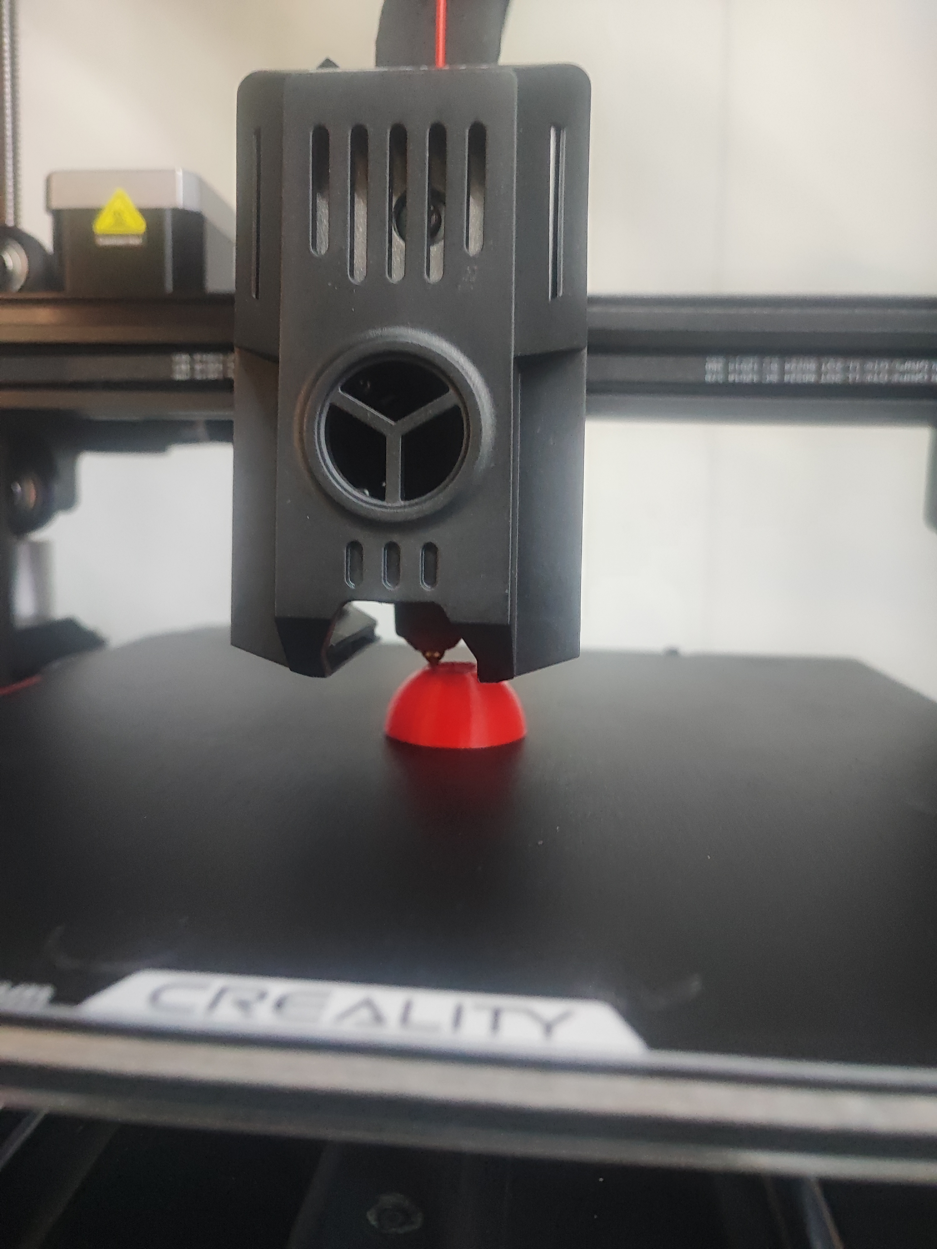 This is the printer I used to print the 3D model of the ball. I chose red filament so that the ball’s color would contrast with the color of the football field.