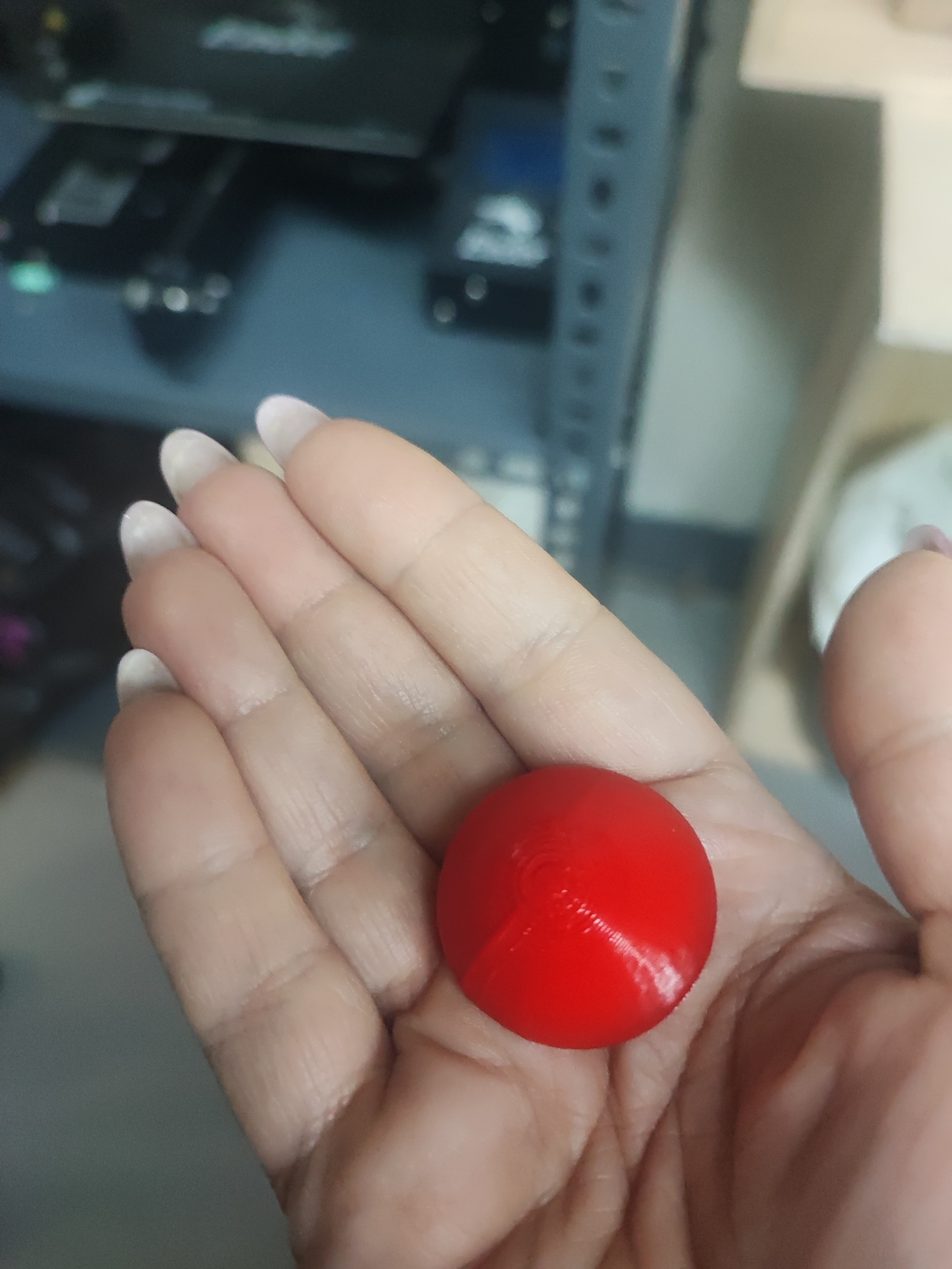 To ensure the ball printed and was centered correctly, I printed two hemispheres and then glued them together.