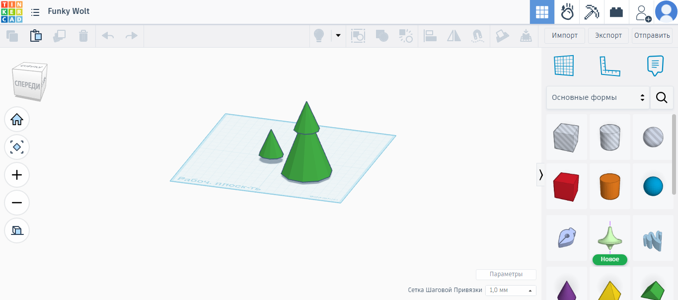This week I had to create 3D objects and print them on a 3D printer. First, I worked in TinkerCad. I tried creating objects, changing parameters, and so on. In the picture, you can see the created fir trees, one of which consists of two parts.