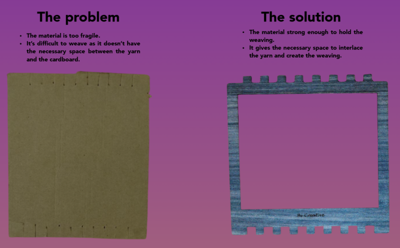 - I ran the laser cutter and carefully removed the cut pieces once the process was complete. -I tested the loom to ensure it worked properly. I concluded the design is functional but I also think it can be improved.
