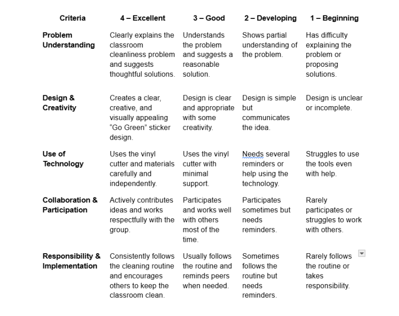Classroom “Go Green” Vinyl Project Rubric¶