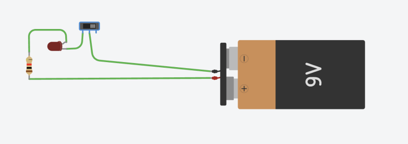 In the images below, you can see how the circuit is arranged as well as how it appears with the switch flipped on and off.