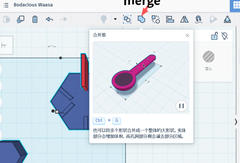 Select the cube, set its width to 2 cm, then merge the hexagon and the square.