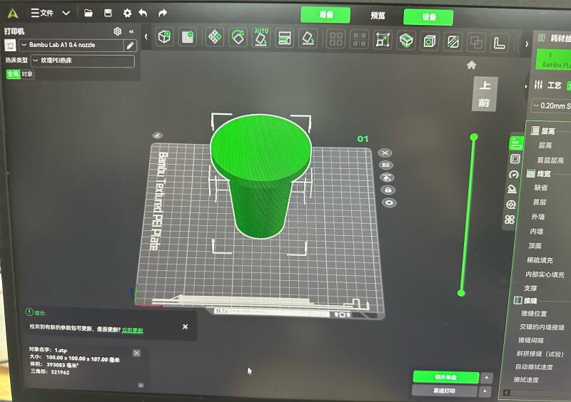 After downloading the test model, I imported the STL file into the slicing software.