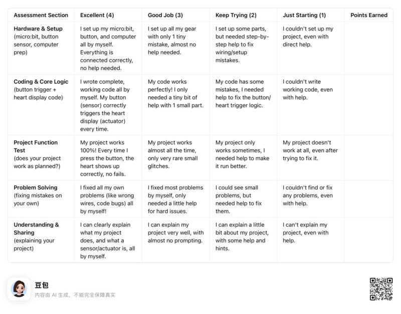 -What are some opportunities in your context to work within your local community? Who you could collaborate with? How? What should happen to succeed in the collaboration * There are many good opportunities for our school makerspace to work with the local community. We can collaborate with local technology shops, small tech companies, libraries, community centers, and other nearby schools. We can also work with parents who have skills in engineering, design, or programming. We can work together by:Holding joint workshops or fairs for students and the community;Inviting local experts to teach basic skills like 3D design, robotics, or coding;Letting students create small projects that help the community, such as environmental monitoring systems or simple smart devices;Displaying student creations in public areas like the library or community center. To make the collaboration successful, we need clear communication, shared goals, and support from teachers and community leaders. We should plan activities together, respect each other’s time, and focus on helping students learn and create. -What are the next steps in development further a makerspace in your school? * The next steps to develop our school makerspace include:Expanding the range of equipment, such as 3D printers, microcontroller kits, basic robotics parts, and electronic components;Organizing regular maker activities, workshops, and project-based challenges for students;Building a simple project display area to show students’ work and encourage creativity;Developing clear safety rules and basic training for students before using tools and machines;Working with teachers to connect maker projects with school subjects like science, technology, art, and design. -How do you envision the makerspace? * I envision our makerspace as a creative, open, and student-friendly area where everyone can design, build, test, and share ideas.It should be a place that supports hands‑on learning, teamwork, and problem‑solving.In the future, the makerspace will not only have tools and machines but also become a creative center for innovation projects, smart school designs, robotics, and small real‑world solutions.It will help students turn their ideas into real projects and prepare them with important skills for the future. -What is the potential of physical computing and IoT for your teaching? Do you have any ideas on how you are planning to integrate those techniques in your context? Physical computing and IoT have enormous potential in my teaching. They help students move from abstract concepts to real‑world applications, making learning more interactive, visual, and meaningful. Instead of only learning theory on paper, students can build, sense, code, and control real objects, which greatly improves their motivation, problem‑solving skills, and creativity.IoT also allows students to connect their projects to the wider world — collecting data, monitoring environments, and communicating with other devices. This supports interdisciplinary learning, combining science, technology, engineering, math, and even art. * Yes, I plan to integrate physical computing and IoT into my teaching in several practical ways:Use micro:bit as the main tool.I will use the micro:bit board with sensors (such as light, temperature, and sound sensors) to let students collect real environmental data;Create simple IoT projects.For example:A classroom or school environment monitoring system.A smart notice board that reacts to light or movement;A small robot that receives signals from another device or phone;Connect with other subjects.In science: measure and record temperature or light changes over time.In math: analyze and graph the collected data.In art & design: create interactive installations or smart models. Let students design and test their own solutions.Students will learn to identify a real problem, and decompose the task,or build a prototype, learning coding at the same time to Improve their project.By doing this, students not only learn technology skills but also develop computational thinking, collaboration, and innovation — competencies that are important for their future learning.