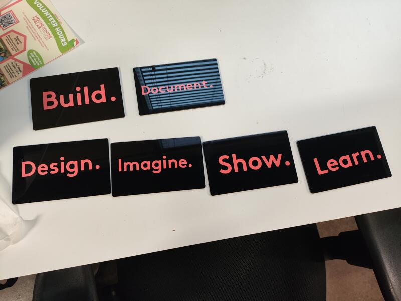 - [ ] Vinyl Cutting : [Designed a sticker that reflects my understanding of the maker mindset. I decided to put it on acrylic bases to use as little signs of the current maker step we are doing in class.]