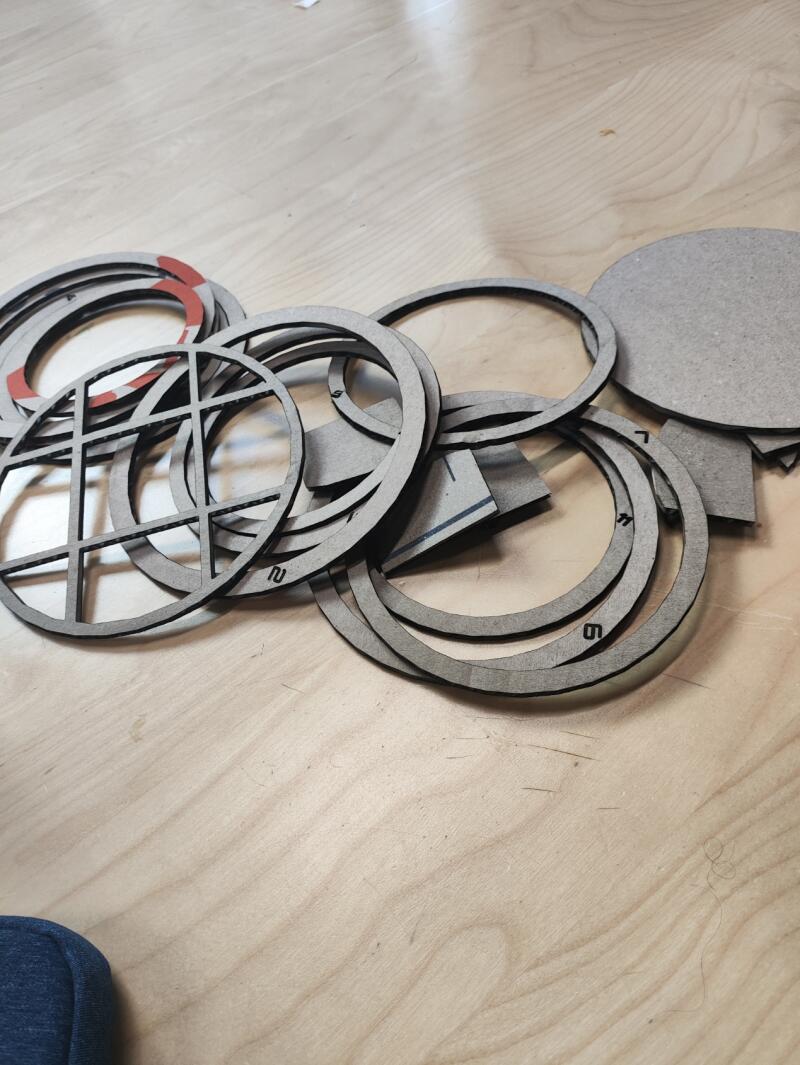 -After cutting, you put to together the planet base by glueing from smaller to biggest. I added numbers on the laser cutting software for easier recognition.