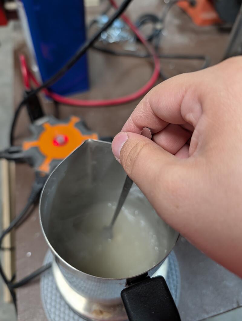 - I cooked the biomaterial using a hot plate. I created a gelatin bioplastic since I wanted a rigid, safe to engrave material.