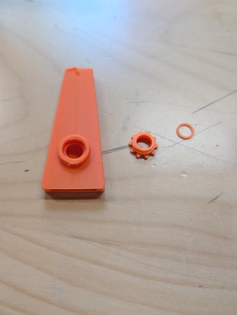 - I created my own example. I researched how they worked and designed a kazoo on Tinkercad from scratch. After printing it, I made sure the parts fit properly.