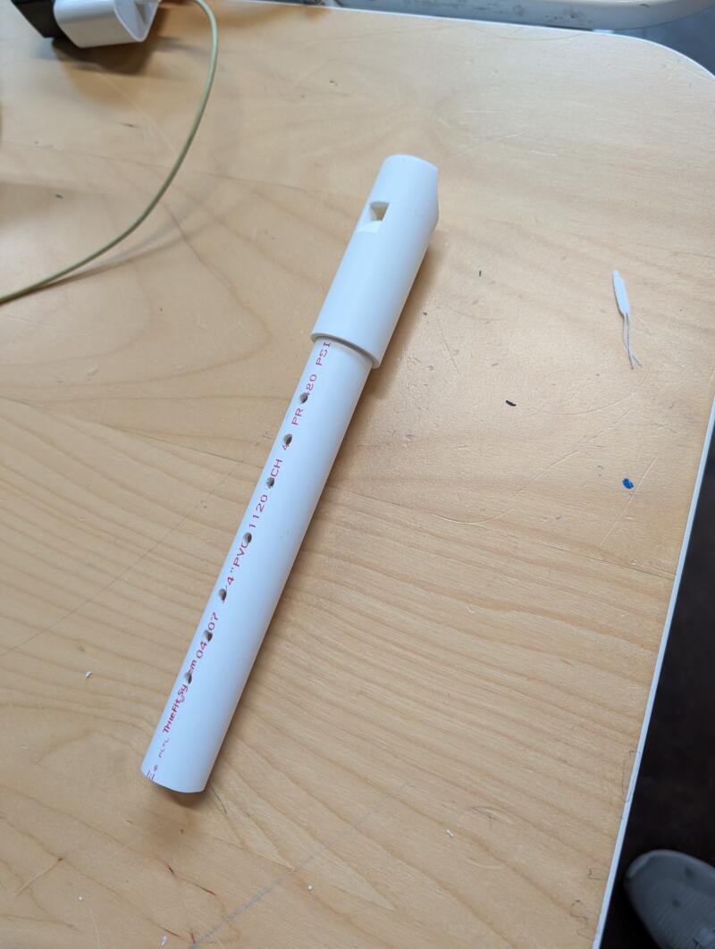 - The recorder worked and was tuned! We had to use a heat gun to soften the PVC pipe since even after various measurements we had trouble fitting the fipple with the pipe.
