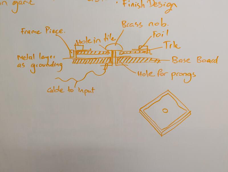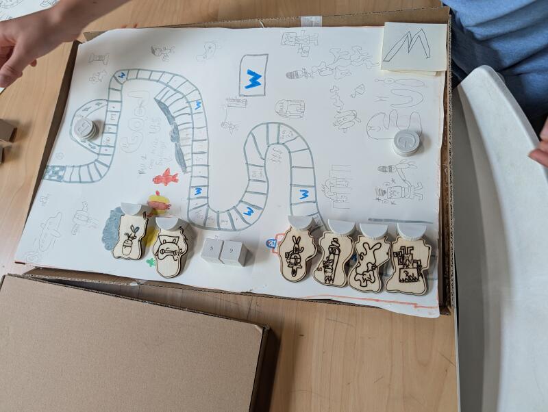 -For the integration of the electronics, we decided to have the students add interactable components with Makey Makeys or Microbits. For that we designed and I build a protoype of how a circuit could work with a Makey Makey for a modular board game. It used conductive materials on the tiles, board and game pieces to show an effect on the screen.